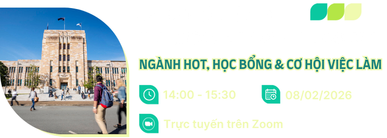 Tháng 02.2026, IDP sẽ tổ chức Hội thảo trực tuyến về University of Queensland, giúp học sinh khám phá ngành học, học bổng, học phí, chương trình đào tạo của trường và cơ hội nghề nghiệp tại Úc. Bạn hãy đăng ký tham gia miễn phí ngay hôm nay!