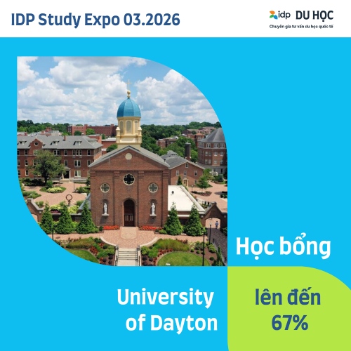 Đừng bỏ lỡ triển lãm du học lớn nhất tháng 3/2026 - IDP International Study Fair, nơi cập nhật những suất học bổng mới nhất, với cơ hội gặp gỡ trực tiếp đại diện tuyển sinh từ hơn 150 trường TOP thuộc các cấp Đại học, Cao đẳng và THPT tại 5 quốc gia lớn: Úc, New Zealand, Anh, Mỹ và Canada.